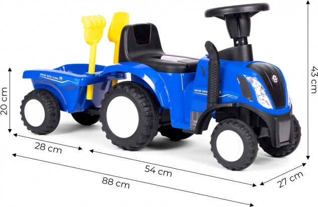 Detaliile realiste și culoarea albastră îi vor bucura pe micii fani ai tehnicii agricole. Calitatea construcției garantează durabilitate la utilizarea zilnică, atât în casă, cât și afară.