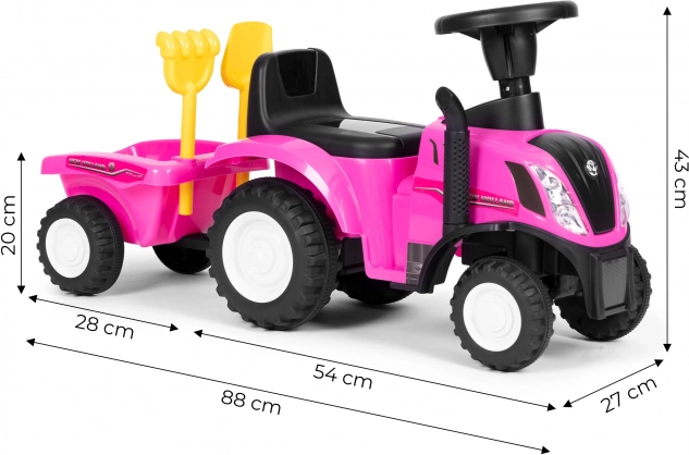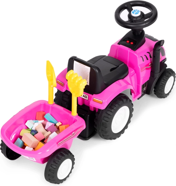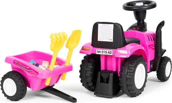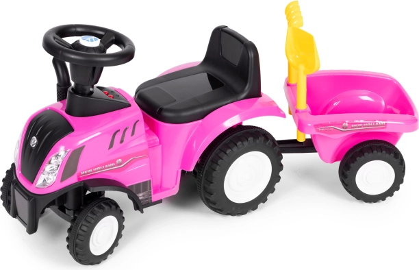 Trotinetă stil tractor pentru copii, cu remorcă detașabilă, oferă ore de distracție activă acasă și în aer liber. Datorită licenței NEW HOLLAND, volanului interactiv cu sunete de claxon și pornire motor și construcției stabile și rezistente, este ideală pentru micii fermieri de la 12 luni. Include greblă și lopățică, scaun confortabil cu spătar și element anti-răsturnare pentru siguranță maximă.