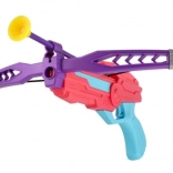 Bucurați-vă de ore de distracție cu această arbaletă colorată din plastic. Datorită ventuzelor de la capetele săgeților, jocul este complet sigur, garantând că copiii dumneavoastră nu se vor răni.
