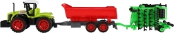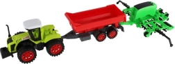 Cu un tractor verde aprins și o remorcă și porți în contrast de culoare roșie, jucăria captează atenția copiilor și le stimulează creativitatea.