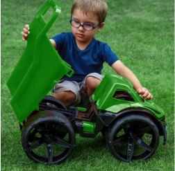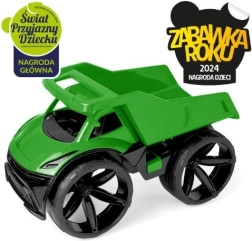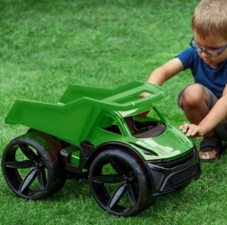 Camionul basculant MAXIMUS, în culoarea verde, impresionează prin aspectul futurist, roțile mari mate și detaliile realizate cu precizie. Construcția ușoară, dar solidă, se manevrează ușor chiar și de către copiii mai mici și, datorită plasticului rezistent, face față jocului în grădină, în parc și în camera copilului.