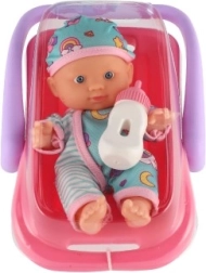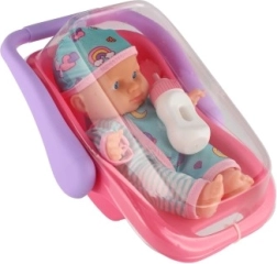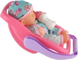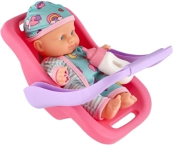 O păpușă drăguță cu corp rigid și înălțime de 20 cm, într-o scoică/scaun auto practic(ă), care va încânta orice mică mămică. Setul include și un biberon pentru joc realist de hrănire. Datorită construcției din plastic solid și mânerului confortabil, păpușa se transportă ușor și este ideală pentru excursii și joacă în timpul călătoriilor.