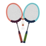 Ideal pentru momente în familie, atât afară, cât și în interior. Datorită execuției sigure din plastic, copiii pot învăța regulile badmintonului fără riscuri și cu maximum de distracție. Setul este destinat jocului recreativ și pentru începători.