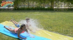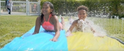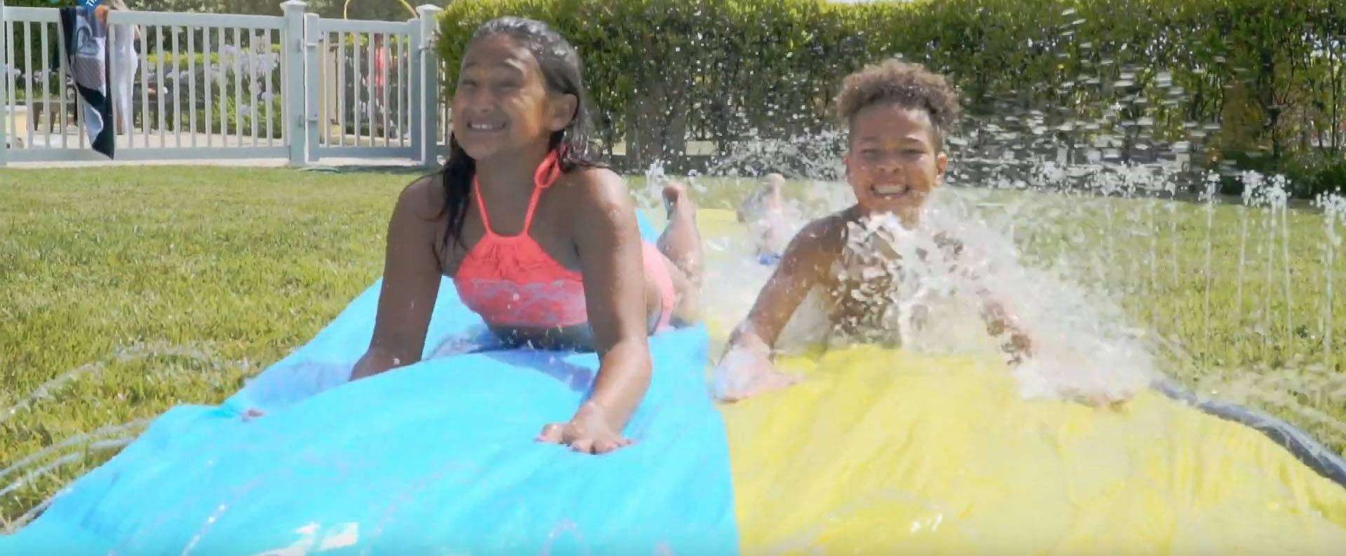 Alergă, sari și alunecă pe un val răcoritor de distracție! Toboganul dublu Wham‑O le permite copiilor să concureze cot la cot, în timp ce stropitoarele integrate păstrează suprafața perfect alunecoasă și plăcut răcoroasă. Datorită materialelor de calitate, toboganul este pregătit pentru bucuriile zilnice ale verii.