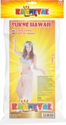 Această fustă hawaiană stilată este baza perfectă pentru un costum exotic. Este realizată din fâșii subțiri de plastic, într-o nuanță naturală, iar talia este decorată cu flori colorate care creează un efect tropical pronunțat. Lungimea de 72 cm asigură o mișcare frumoasă la dans și purtare confortabilă pe tot parcursul evenimentului.