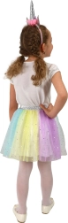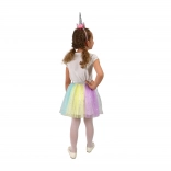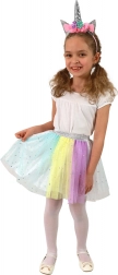 Acest set fermecător aduce magia unicornilor în garderoba copilului. Fusta tutu ușoară, aerisită, în culori pastel se învârte frumos, iar datorită taliei elastice se îmbracă ușor și este plăcută la purtare. Ținuta este completată de bentita cu corn și decorațiune florală, care transformă o zi obișnuită într-o aventură de basm.