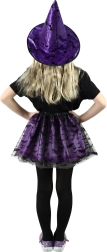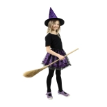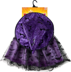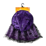 Acest costum de vrăjitoare pentru copii impresionează prin designul jucăuș și purtarea confortabilă. Fusta tutu foarte ușoară, cu imprimeu de lilieci, are o lungime aproximativă de 30 cm și, datorită benzii elastice în talie, se adaptează cu ușurință siluetei. Setul include și o pălărie ascuțită în același stil, care completează lookul fermecat.