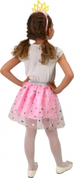 Fustița roz din tulle, cu imprimeuri delicate de coroane, creează un efect de prințesă încântător pentru orice ocazie.