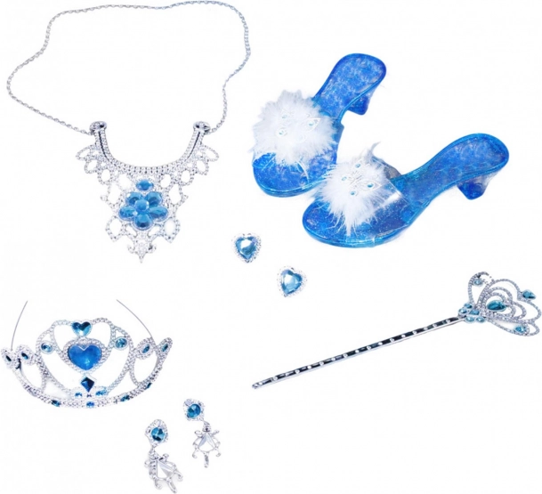 Devin-o o prințesă de iarnă cu acest set minunat de accesorii care include pantofiori de lux, coroană frumoasă, sceptru, un colier uimitor cu cercei și inel.