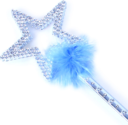Bagheta magică are un design cu stea și pietricele albastre, care subliniază eleganța sa magică.