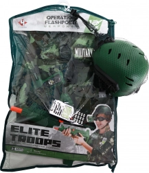 Setul include tot ce aveți nevoie pentru joaca militară - vestă, cască, arme și alte accesorii.