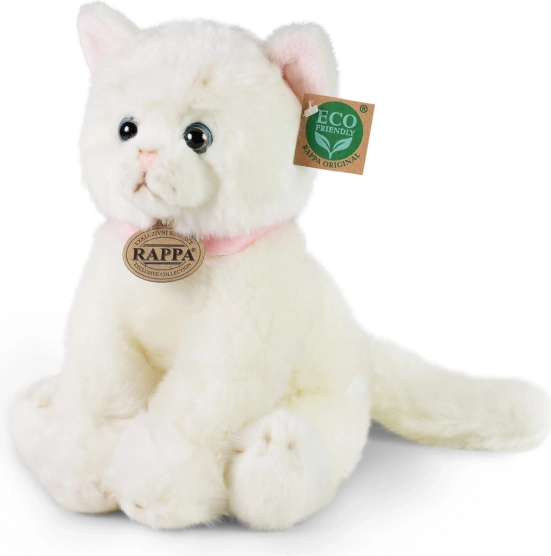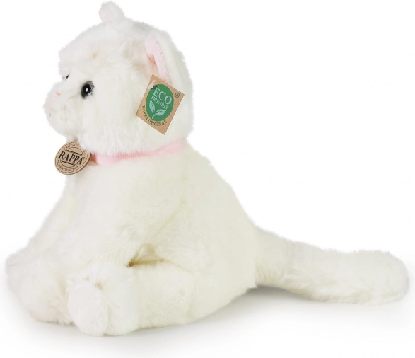 Vă prezentăm pisica fermecătoare din pluș a mărcii RAPPA, creată cu atenție la detalii și grijă pentru natură. Această pisică albă este echipată cu o zgardă roz care îi subliniază naturalețea și jucăușenia.