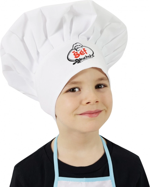 Boneta de bucătar cu inscripția „Șef bucătar” este accesoriul indispensabil pentru orice mic ajutor în bucătărie! Această piesă stilată nu trebuie să lipsească niciunui mic bucătar atunci când gătește!