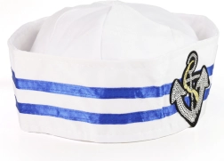 Șapcă marinărească stilată pentru copii, în clasicul alb cu dungi albastre și emblemă cu ancoră, care îl va face pe micul căpitan de neoprit. Ideală pentru carnaval, petreceri mascate, serbări școlare și petreceri tematice. Datorită materialului textil ușor și croielii universale, șapca este confortabilă și se combină ușor cu un costum. Design marinăresc, purtare confortabilă și aplicație proeminentă cu ancoră care oferă oricărei deghizări un aspect autentic.