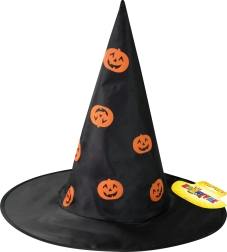 Oferiți-le copiilor o experiență de Halloween de neuitat cu această pălărie vrăjitorească neagră decorată cu dovleci portocalii de impact. Materialul textil ușor asigură confort pe toată durata purtării, iar forma clasică ascuțită creează instant un efect magic.