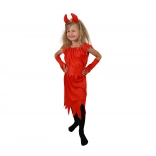 Pachetul include un set complet de accesorii: rochie cu aspect „în flăcări”, curea pentru evidențierea taliei, mânecuțe și bentiță cu coarne. Datorită acestora, obții un costum complet fără achiziții suplimentare.