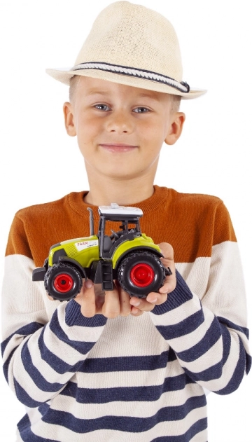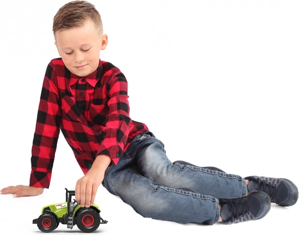 Descoperă un tractor modern din plastic, cu lungimea de 14 cm, care va cuceri orice mic pasionat de utilaje agricole. Sunetele realiste și efectele luminoase contribuie la un joc captivant.