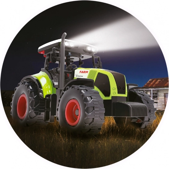 Tractorul este echipat cu butoane care, la apăsare, redau sunete și efecte luminoase realiste, adăugând o senzație autentică de lucru agricol.
