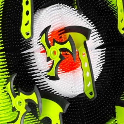 Set distractiv și sigur pentru aruncat la țintă, cu topoare și shuriken-uri din silicon moale pe un stativ stabil. Ideal pentru copii de la 8 ani – dezvoltă motricitatea fină, coordonarea mână–ochi și precizia. Capetele din silicon moale și plasticul ușor asigură joaca în siguranță acasă și în grădină.