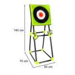 Setul este conceput pentru joacă în siguranță, datorită siliconului moale în zonele de impact și plasticului rezistent. Ținta mare, cu model bullseye contrastant, oferă feedback vizual clar și motivează la performanțe mai bune.