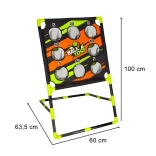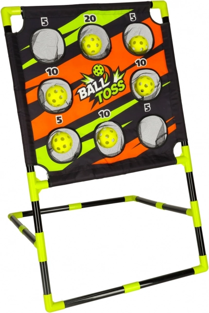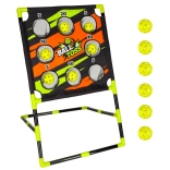 Scorul marcat clar 5, 10 și 20 de puncte susține competiția corectă și motivează îmbunătățirea treptată. Șase mingi perforate cu diametrul de cca 7 cm sunt sigure și se prind bine – ideale pentru exersarea tehnicii, vitezei și forței aruncării.