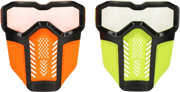 Măști ușoare, cu curele ajustabile și zonă transparentă, sporesc siguranța și confortul în fiecare bătălie.