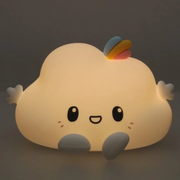 Această simpatică lampiță de noapte în formă de norișor, cu suprafață din silicon, va încânta orice copil. Oferă 3 moduri de iluminare (alb cald, RGB cu schimbare de culori, lumină monocromă), control tactil, baterie încorporată de 1200 mAh cu autonomie de 9–10 ore și încărcare USB. Lumina plăcută și delicată creează o atmosferă liniștitoare pentru un somn ușor.