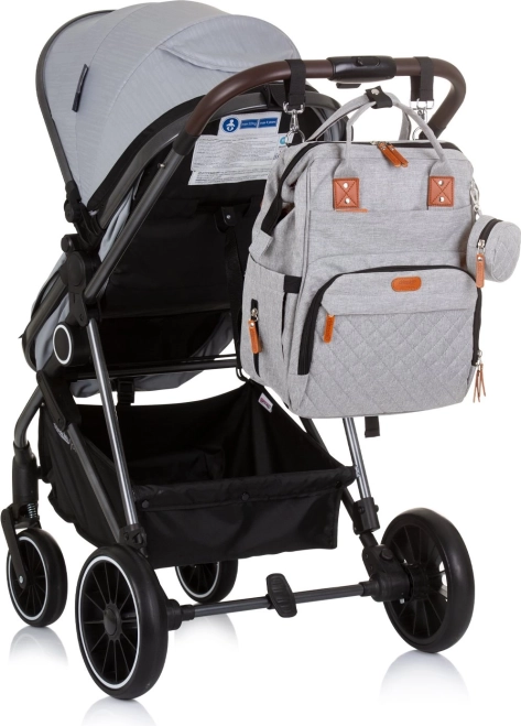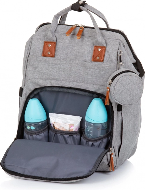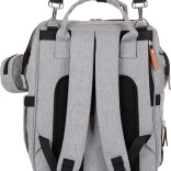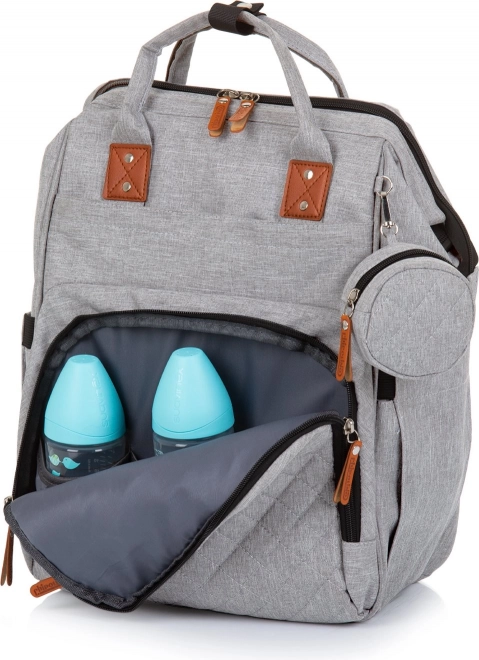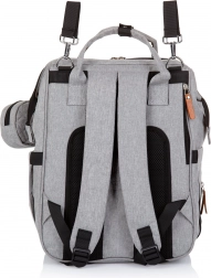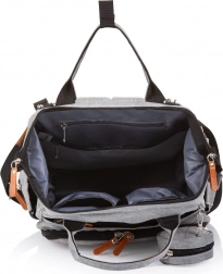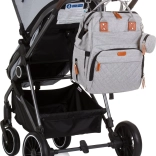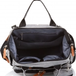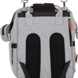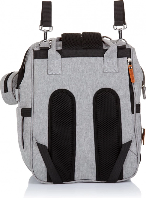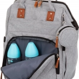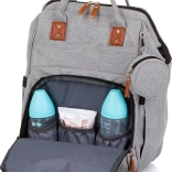 Rucsacul stilat pentru schimbat scutece, în gri, îmbină designul modern cu funcționalitatea maximă. Datorită numeroaselor buzunare, inclusiv trei buzunare interne termo pentru sticle, găsești rapid tot ce este important – de la scutece la gustări. Rucsacul se prinde ușor pe mânerul căruciorului și, datorită bretelelor căptușite, se poartă confortabil și pe spate.