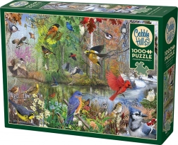 Descoperă frumusețea naturii în ilustrația plină de păsări colorate la marginea unui iaz, unde se împletesc primăvara, vara, toamna și iarna. Puzzle-ul din colecția COBBLE HILL folosește o ștanță neregulată, astfel că colțurile și marginile pieselor nu sunt pe aceeași axă, iar fiecare piesă are propriul caracter. Rezultatul este o asamblare mai captivantă și o experiență de joc mai îndelungată.