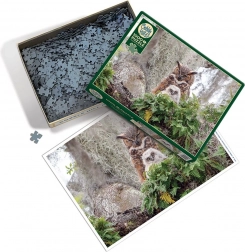 Reprezentarea detaliată a unui vultur adult și a puiului său în vegetație verde amplifică atmosfera naturii și transformă puzzle-ul într-un tablou decorativ captivant.