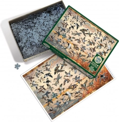 Bucurați-vă de ilustrații detaliate ale rațelor din America de Nord pe puzzle-ul de calitate COBBLE HILL. Ștanțarea specială neclasică, cu forme atipice, crește nivelul de dificultate și aduce o experiență proaspătă față de decupajele „tip grilă” obișnuite. Ideal pentru iubitorii de natură, ornitologie și provocări.