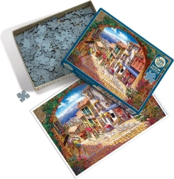 Cufundați-vă în atmosfera pitorească a orășelului istoric Cagne și descoperiți farmecul pasajelor boltite într-un motiv detaliat și bogat colorat. Puzzle-ul COBBLE HILL se remarcă prin forma neobișnuită a pieselor, care nu urmează grila standard. Acest lucru crește dificultatea și distracția și oferă un sentiment satisfăcător la finalizarea lucrării.