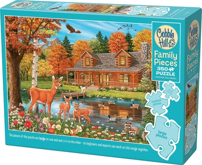 Puzzle-ul de familie COBBLE HILL este conceput astfel încât să se bucure de el toți – de la cei mai mici până la adulți. Motivele idilice ale iazului de lângă cabană aduc o atmosferă liniștită și detalii frumoase pe care veți fi încântați să le descoperiți. Împărțirea puzzle-ului în zone cu dimensiuni diferite ale pieselor permite asamblarea comodă, unul lângă altul.