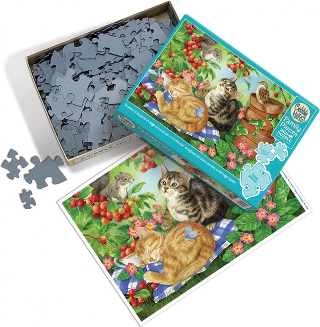 Acest puzzle de familie combină inteligent piese mari, medii și mici într-o singură imagine. Piesele mari sunt plasate într-o parte a motivului și sunt perfecte pentru copiii mai mici, în timp ce piesele cele mai mici pe partea opusă îi vor încânta pe adulți și pe cei mai experimentați. Partea din mijloc, cu piese medii, este ideală pentru copiii mai mari sau bunici – motivul este bine lizibil și asamblarea curge lin.