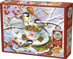 Descoperiți motivul de iarnă cu păsărele lângă o ceașcă de ceai, care va însenina orice masă sau living. Acest puzzle cu 275 de piese XL pune accent pe confort, oferind în același timp o provocare elaborată datorită decupajului original COBBLE HILL. Piesele nu sunt aranjate în grilă clasică, astfel că asamblarea este distractivă, variată și mereu surprinzătoare.