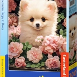 Bucurați-vă de distracție cu adorabilul motiv al cățelușului Pomeranian printre trandafiri. Acest puzzle pentru copii este alcătuit din 60 de piese și este ideal pentru dezvoltarea motricității fine și a logicii. Piese mai mari de 3,5 cm facilitează asamblarea, iar dimensiunea compactă după asamblare 23 × 32 cm este perfectă pentru masa copilului.
