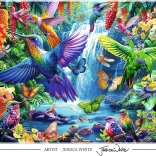Motivul plin de colibri colorate, plante tropicale și o cascadă aduce în interior prospețime și energie pozitivă. Excelent ca dar sau pentru relaxarea proprie.
