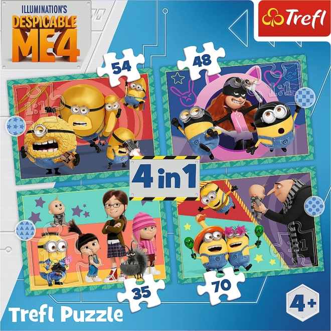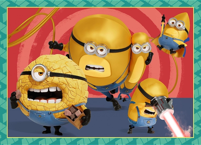 Descoperă distracția alături de eroii îndrăgiți din filmul Gru și Minionii. Setul conține patru puzzle-uri independente, fiecare formând după asamblare o imagine colorată cu dimensiunile 285 × 205 mm. Datorită nivelurilor diferite de dificultate, copiii pot alege ce puzzle pot rezolva chiar acum – și să progreseze treptat.