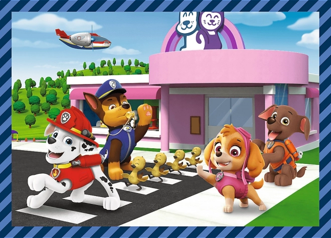 Descoperă distracția cu 4 puzzle-uri separate din îndrăgita animație Patrula Cățelușilor. Fiecare set oferă un număr diferit de piese pentru copii de vârste și niveluri de îndemânare diverse, iar cea mai mare imagine are dimensiunile de 28,5 × 20,5 cm. Puzzle-urile sunt fabricate în Polonia folosind materiale ecologice.