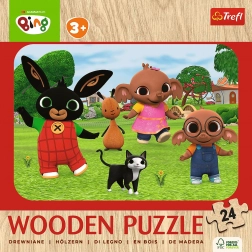 Descoperiți asamblarea distractivă și sigură cu puzzle-urile din lemn BING pentru cei mici. Datorită pieselor mari, marginilor rotunjite și prelucrării precise cu laser, copiii învață să asambleze ușor și cu plăcere. Puzzle-ul vine într-un ambalaj ecologic, fără plastic, iar pe verso este decorat cu un model decorativ.