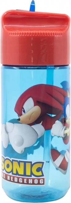 Sticla este imprimată cu personajele populare din seria Sonic the Hedgehog, ideală pentru fanii de toate vârstele.