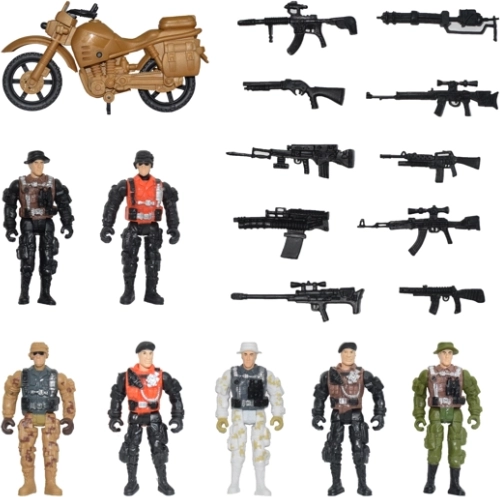 - Conținutul setului: soldați, motocicletă, arme