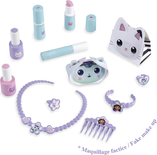 Include „sticluțe cosmetice”, rujuri, rimel, pieptene, colier, brățară, inele și altele pentru un joc realist.