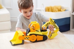 Constructorul îndrăgit pleacă la treabă cu buldozerul său deluxe. Copiii pot așeza figurina în cabină și, printr-o simplă apăsare, pot porni luminile care clipesc și efectele sonore realiste. Cupa frontală și brațul excavator din spate sunt complet mobile, astfel încât săpatul, ridicarea și încărcarea devin floare la ureche.