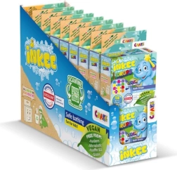 Oferă-le copiilor și ție o baie jucăușă și parfumată cu fulgii INKEE. 100 g de bucățele colorate în patru straturi (albastru, roz, mov, galben) se dizolvă lent în apă și creează o explozie magică de culori cu un parfum irezistibil de vată de zahăr și îngrijirea untului de shea.