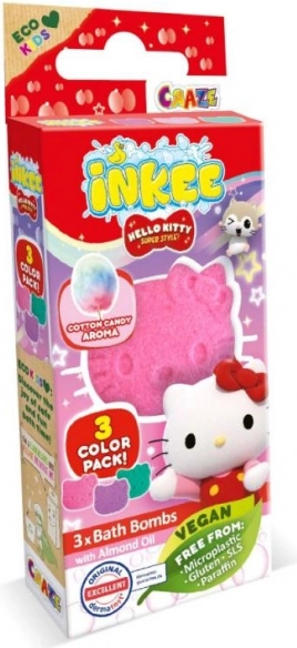 Descoperă farmecul băii cu mini pachetul Inkee Hello Kitty. Trei bombe efervescente mici (3×15 g) transformă apa într-o baie jucăușă și colorată, cu o delicată aromă de vată de zahăr. Ambalajul stilat cu fereastră îi va încânta pe copii și pe fanii HELLO KITTY și este perfect ca un cadou mic.