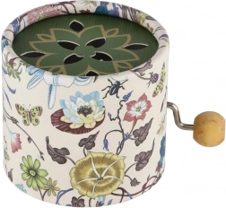 Această cutie muzicală manuală, într-o cutie metalică cu imprimeu pe hârtie și capac floral, redă melodia prin simpla rotire a manivelei. Datorită dimensiunilor compacte de 9 × 6 × 9 cm, se ține excelent în mână și încape ușor în geantă sau pe raft. Este ideală pentru momente de liniște, dezvoltarea simțurilor și ca accesoriu plăcut pentru camera copilului.