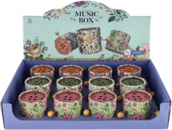 Cutia este disponibilă în mai multe variante de culoare, cu model floral decorativ. Mecanismul manual nu necesită baterii, astfel încât este mereu gata de folosit. Recomandată copiilor de la 3 ani.