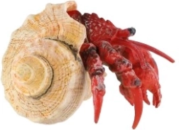 Figurină din plastic a unui crab pustnic, realizată realist, cu dimensiunea 7 cm, îi va încânta pe iubitorii de viețuitoare marine și pe colecționari. Datorită execuției detaliate și plasticului rezistent, este potrivită ca decorațiune, model educațional sau parte din diorame și expoziții tematice.