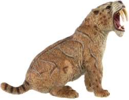 Descoperiți lumea prădătorilor preistorici cu o figurină fidelă a tigrului cu dinți-sabie. Acest model, cu gura deschisă și colți proeminenți, se remarcă prin textura realistă a blănii și detalii atent lucrate, care îi vor încânta pe copii, părinți și colecționari.